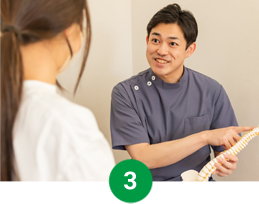 生活リズムや身体の使い方をヒアリングし、軽度の筋緊張や体のバランスの乱れを確認します。